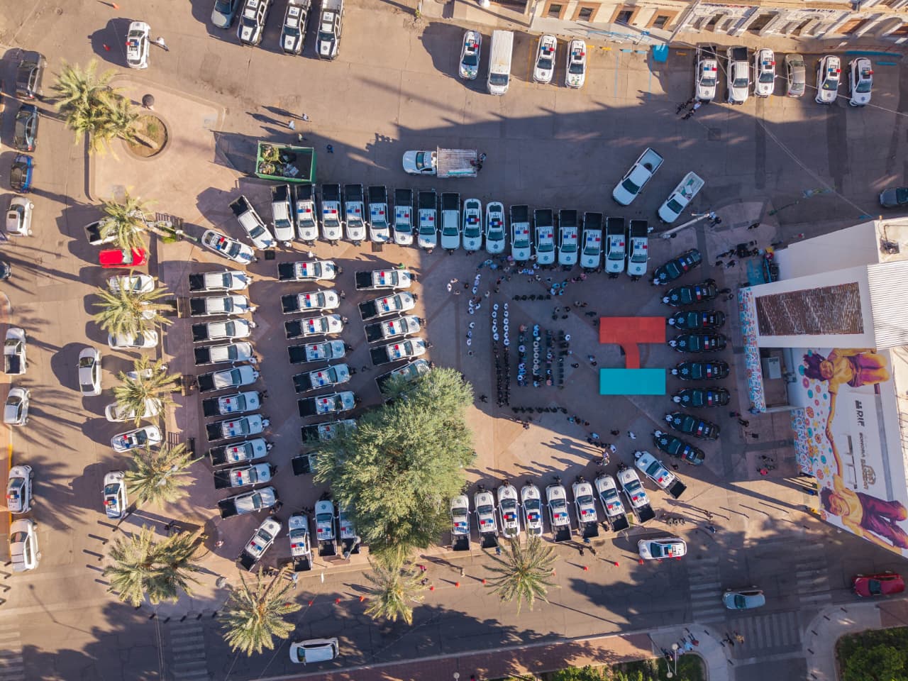 Hermosillo pasó de tener 70 patrullas en el año 2021 a 354 patrullas eléctricas registrando un incremento del 400 por ciento en su flotilla; 21 Centros de Respuesta Inmediata (CRI) distribuidos en distintos sectores, 5 drones de vigilancia, así como uniformes, chalecos balísticos y programas de capacitación, que en conjunto representan una inversión de más de 525.1 millones de pesos en materia de seguridad pública y sustentabilidad.