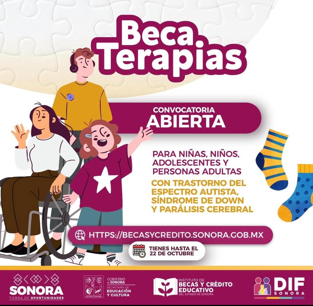 El registro de solicitudes es totalmente gratuito y sin necesidad de gestores y estará abierto del 8 al 22 de octubre para todas las personas que requieran una terapia. Las y los interesados podrán consultar las bases y requisitos en el portal electrónico del Instituto de Becas y Crédito Educativo del Estado de Sonora: https://becasycredito.sonora.gob.mx/.