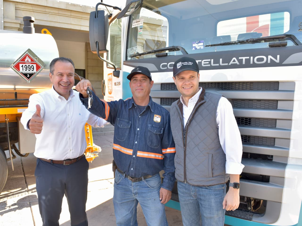 Entrega 2 camiones de volteo para el área de Parques y Jardines de Servicios Públicos y 1 petrolizadora para Desarrollo de Infraestructura con una inversión de 16 mdp