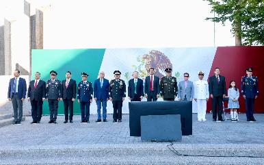 Rinden Durazo y Sheinbaum homenaje al lábaro patrio con toma de protesta a escoltas en enlace nacional