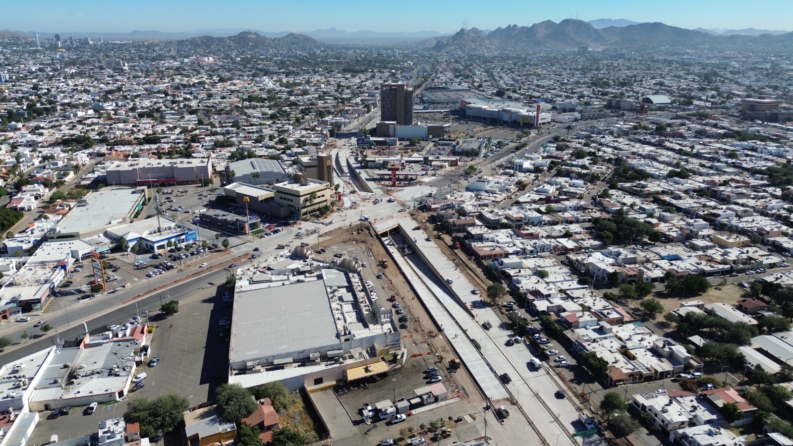 Destacó que esta obra integral con recursos municipales avanza en tiempo y forma, consolidándose como una de las intervenciones viales más importantes de la capital sonorense, al estar diseñada para mejorar el flujo de más de 74 mil vehículos que transitan diariamente por esta zona de alta demanda.