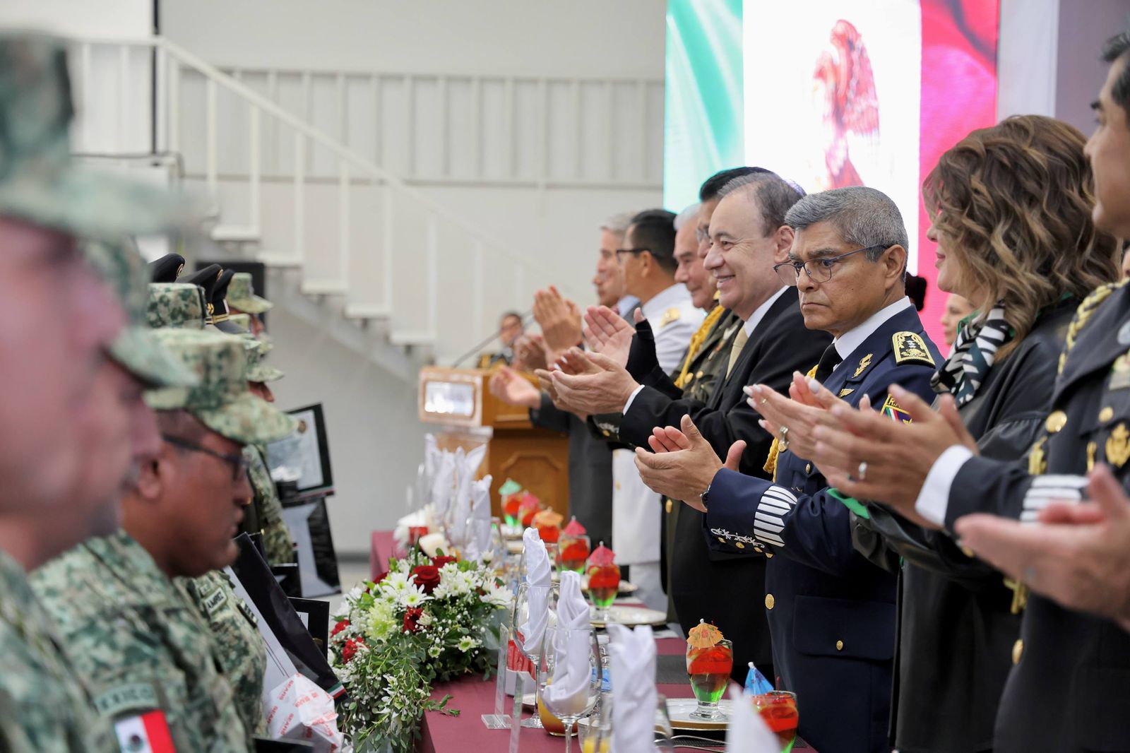 "Un respaldo familiar en el cumplimiento de una responsabilidad, de una tarea tan delicada como la que tienen encomendada las y los integrantes del Ejército, hacen la diferencia. Expresar mi reconocimiento por la formación de todas y todos los integrantes de nuestro Ejército, su compromiso con el país, con la Constitución, sus valores, su sentido del deber inspiran al ámbito civil para que cuando tengamos una responsabilidad cumplamos con ella como lo hacen las y los integrantes de nuestro Ejército nacional", subrayó el gobernador Alfonso Durazo.